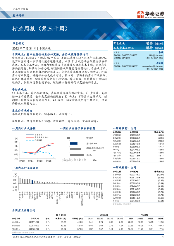 【华泰证券】【20220731】20220731-华泰证券-基础材料行业周报(第三十周)-18页