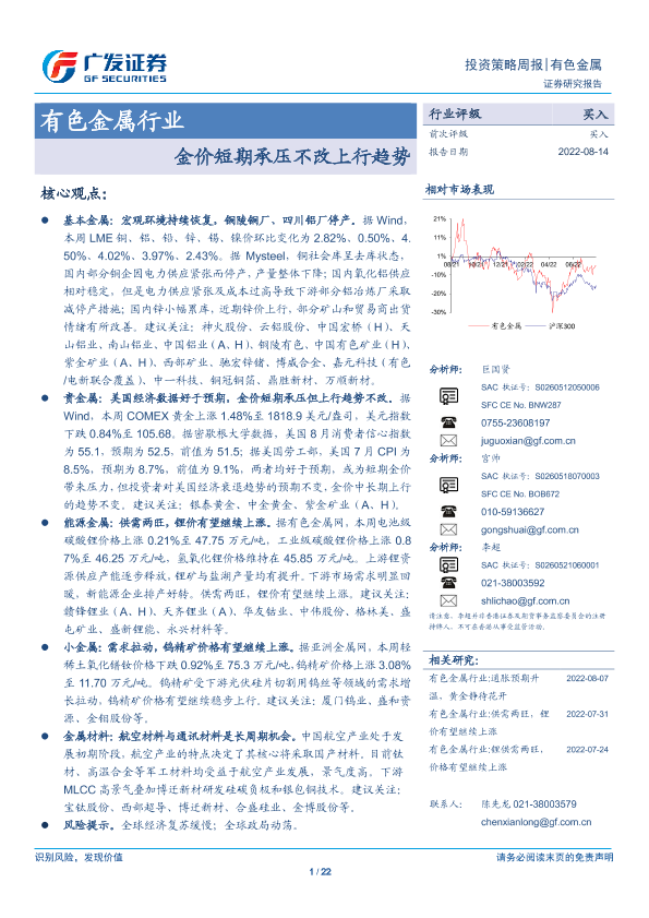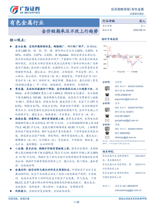 【广发证券】【20220814】20220814-广发证券-有色金属行业投资策略周报:金价短期承压不改上行趋势-22页