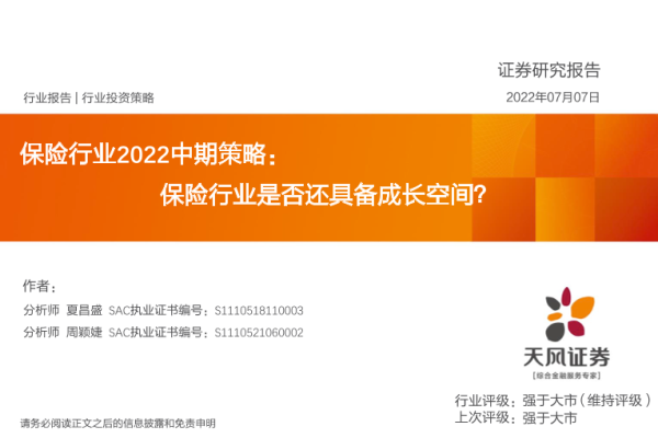 【天风证券】【20220707】保险行业2022中期策略:保险行业是否还具备成长空间?-51页