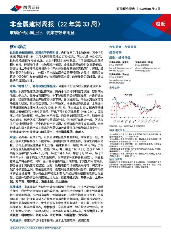 【国信证券】【20220816】20220816-国信证券-非金属建材周报(22年第33周):玻璃价格小幅上行,去库存效果明显-20页