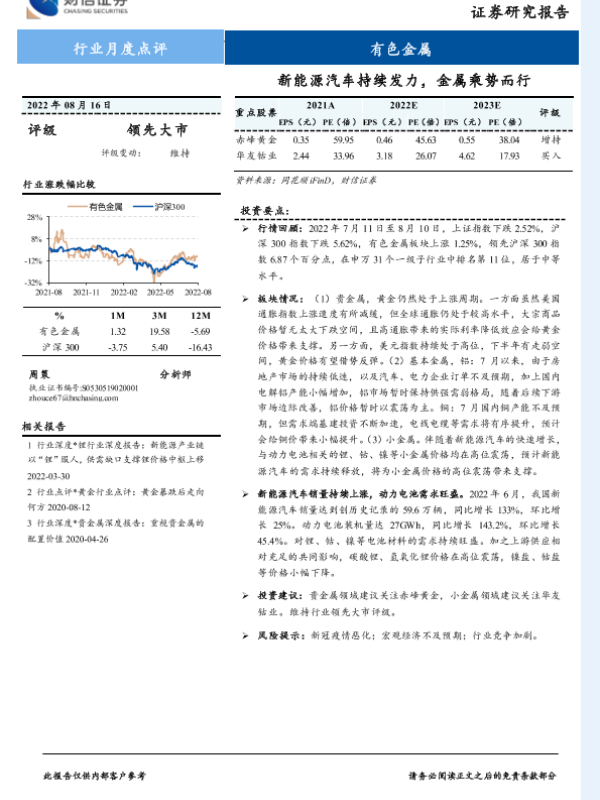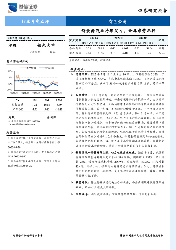 【财信证券】【20220816】20220816-财信证券-有色金属行业月度点评:新能源汽车持续发力,金属乘势而行-13页
