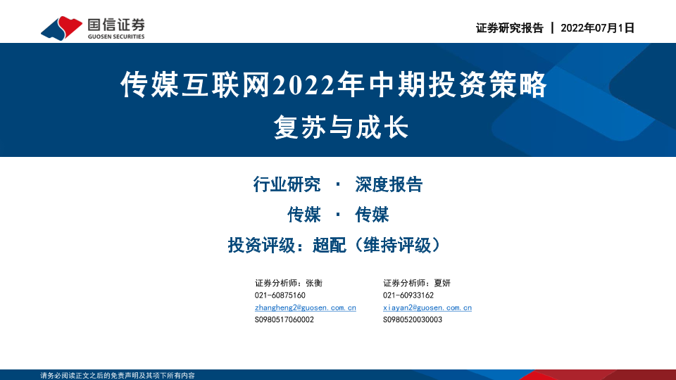 【国信证券】【20220701】传媒互联网行业2022年中期投资策略:复苏与成长-46页