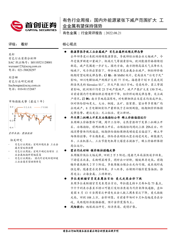 【首创证券】【20220821】20220821-首创证券-有色行业周报:国内外能源紧张下减产范围扩大 工业金属有望保持强势-22页
