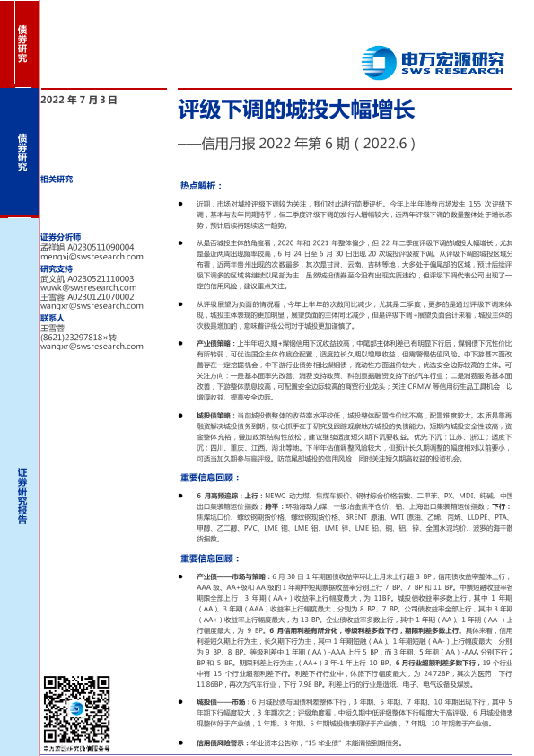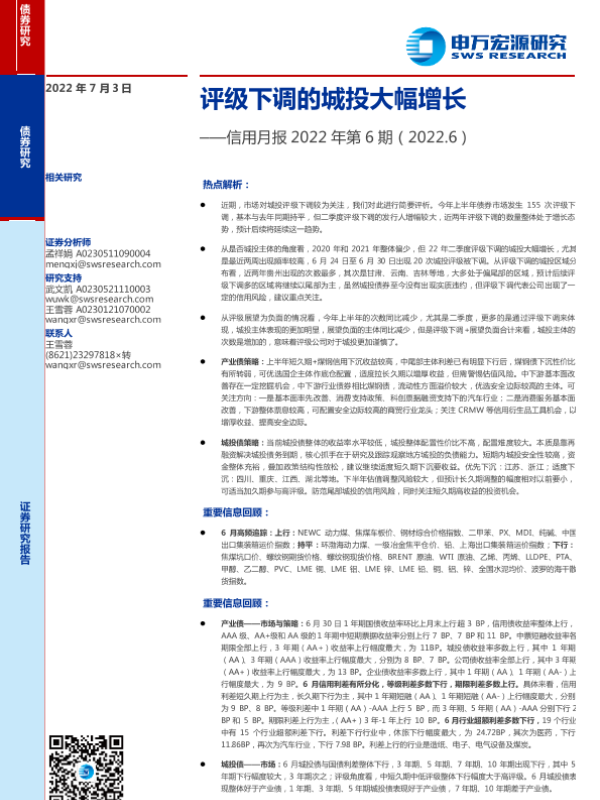 【申万宏源】【20220703】信用月报2022年第6期:评级下调的城投大幅增长-17页