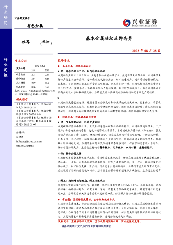 【兴业证券】【20220828】20220828-兴业证券-有色金属行业周报:基本金属延续反弹态势-22页