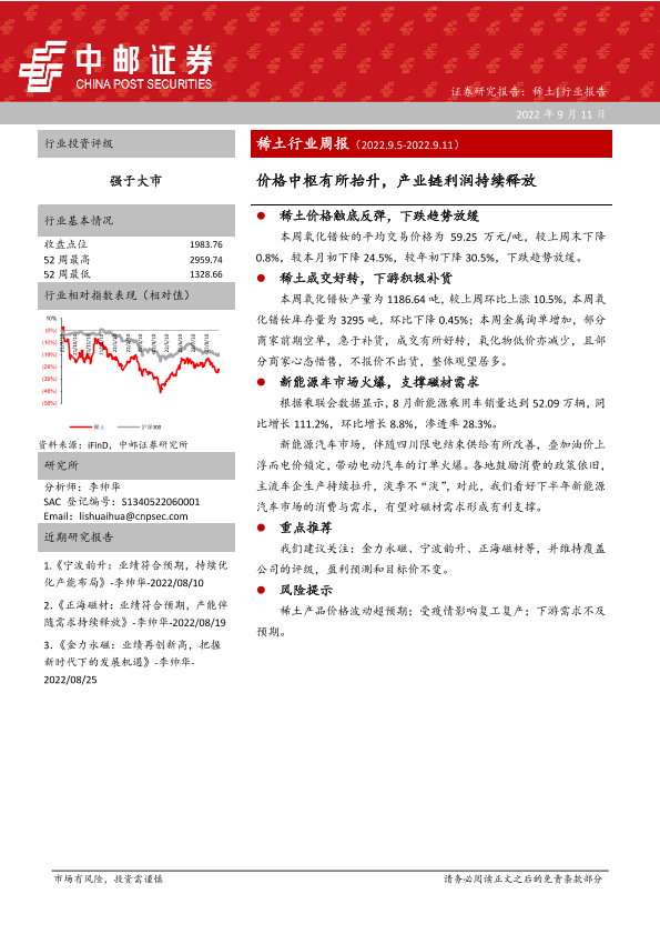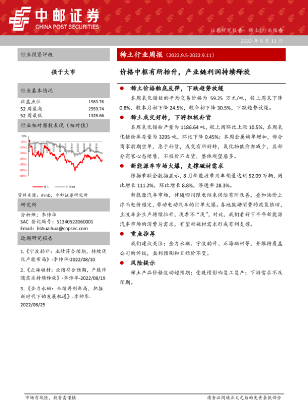 【中邮证券】【20220911】20220911-中邮证券-稀土行业周报:价格中枢有所抬升,产业链利润持续释放-12页