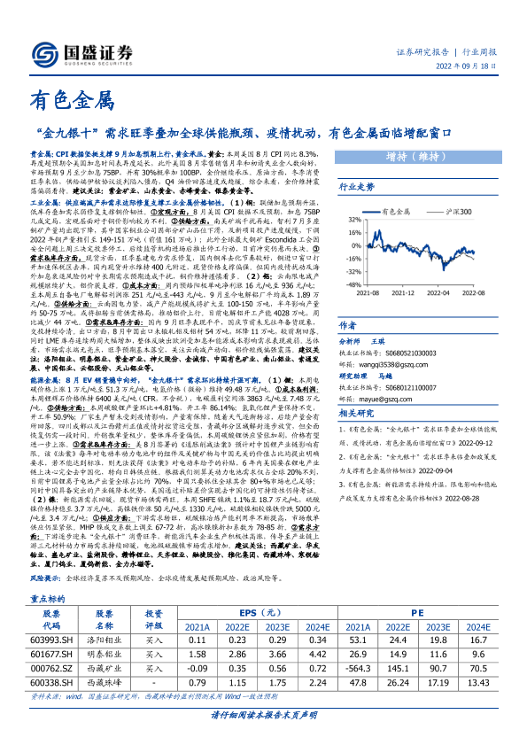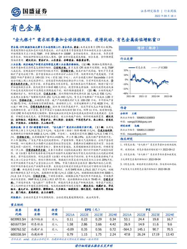 【国盛证券】【20220918】“金九银十”需求旺季叠加全球供能瓶颈、疫情扰动,有色金属面临增配窗口-20页