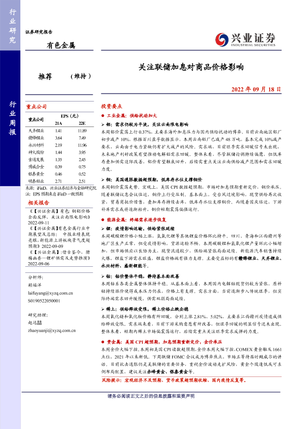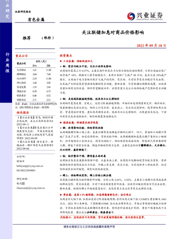 【兴业证券】【20220918】20220918-兴业证券-有色金属行业周报:关注联储加息对商品价格影响-21页