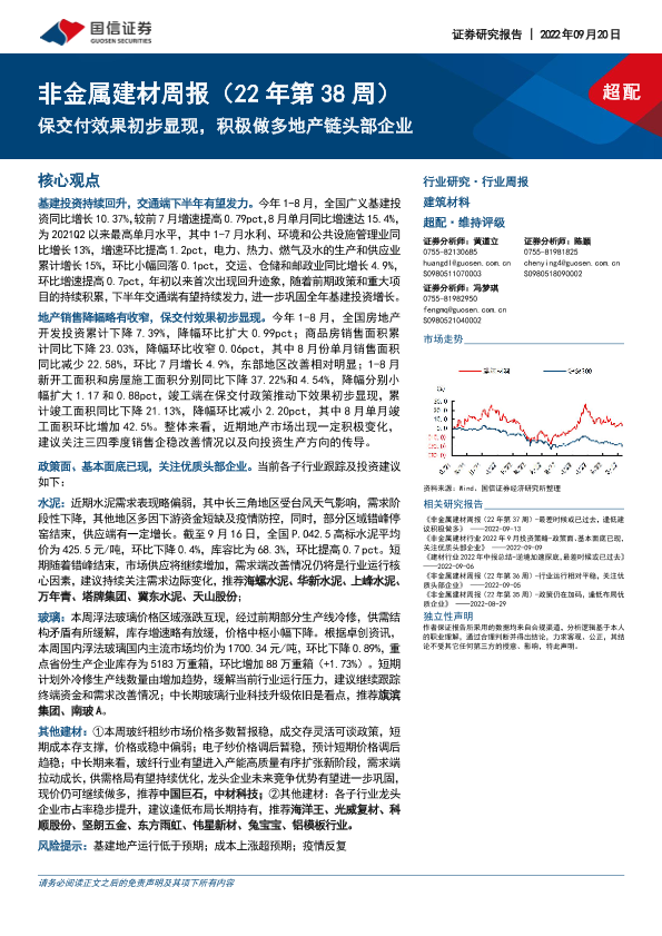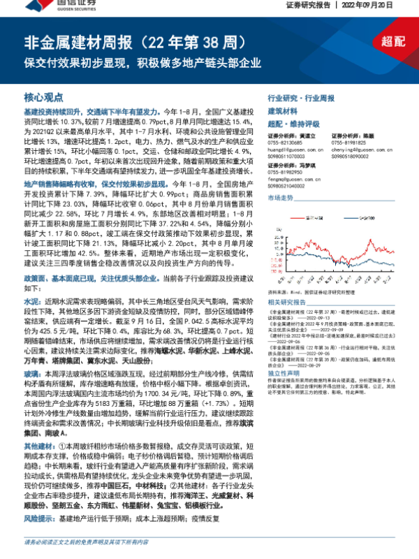【国信证券】【20220920】20220920-国信证券-非金属建材周报(22年第38周):保交付效果初步显现,积极做多地产链头部企业-20页