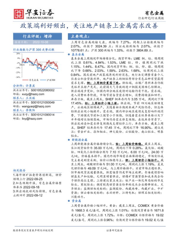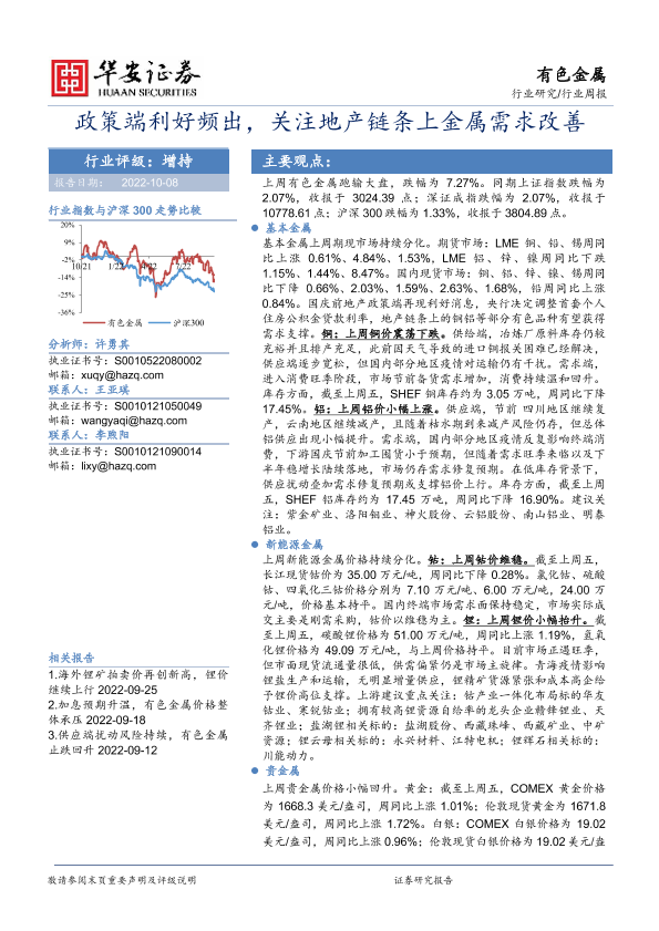 【华安证券】【20221008】20221008-华安证券-有色金属行业周报:政策端利好频出,关注地产链条上金属需求改善-17页