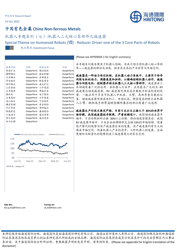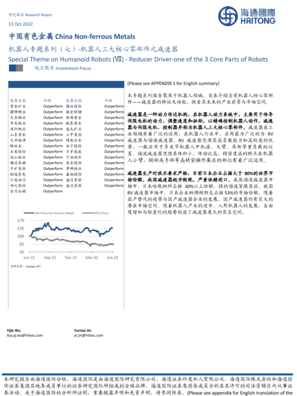 【海通国际】【20221013】中国有色金属:机器人专题系列(七)-机器人三大核心零部件之减速器-13页
