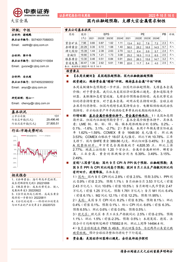 【中泰证券】【20221016】20221016-中泰证券-大宗金属行业周报:国内社融超预期,支撑大宗金属需求韧性-28页