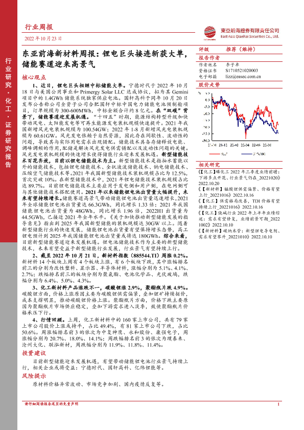 【东亚前海证券】【20221023】东亚前海新材料周报:锂电巨头接连斩获大单,储能赛道迎来高景气-22页