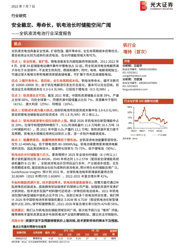 【光大证券】【20220707】全钒液流电池行业深度报告:安全稳定、寿命长,钒电池长时储能空间广阔-34页