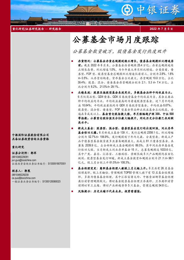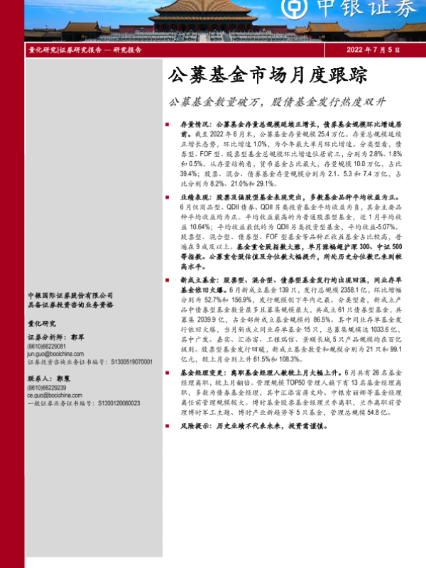 【中银证券】【20220705】公募基金市场月度跟踪:公募基金数量破万,股债基金发行热度双升-20页