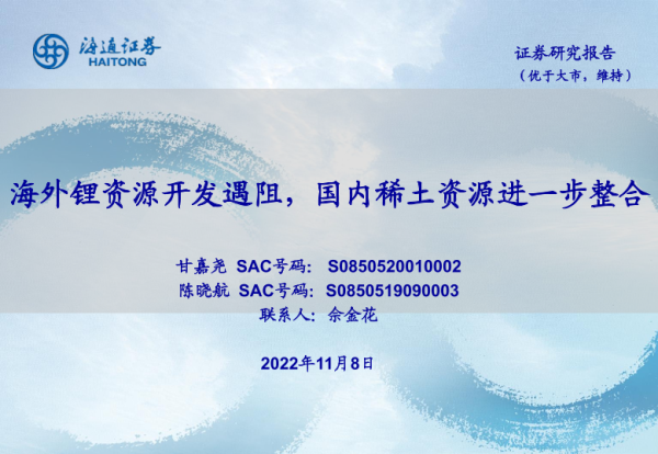 【海通证券】【20221108】海外锂资源开发遇阻,国内稀土资源进一步整合-11页