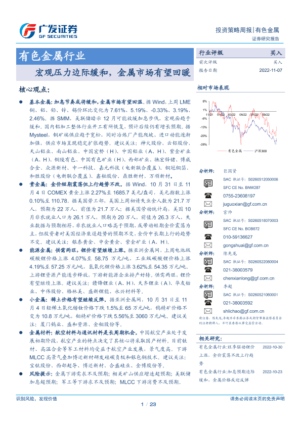 【广发证券】【20221107】20221107-广发证券-有色金属行业投资策略周报:宏观压力边际缓和,金属市场有望回暖-23页