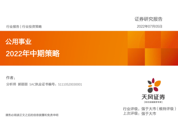 【天风证券】【20220705】公用事业行业2022年中期策略-36页