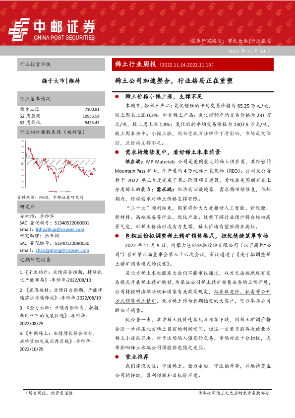 【中邮证券】【20221119】20221119-中邮证券-稀土行业周报:稀土公司加速整合,行业格局正在重塑-13页