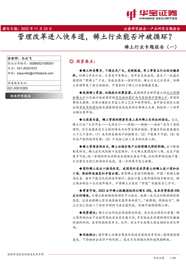 【华宝证券】【20221123】管理改革进入快车道,稀土行业能否冲破循环?-24页