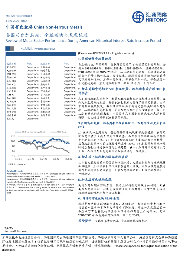 【海通国际】【20221201】中国有色金属:美国历史加息期,金属板块全表现梳理-13页