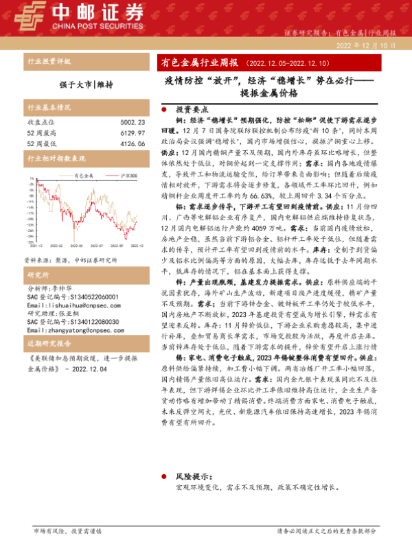 【中邮证券】【20221210】20221210-中邮证券-有色金属行业周报:疫情防控“放开”,经济“稳增长”势在必行——提振金属价格-17页