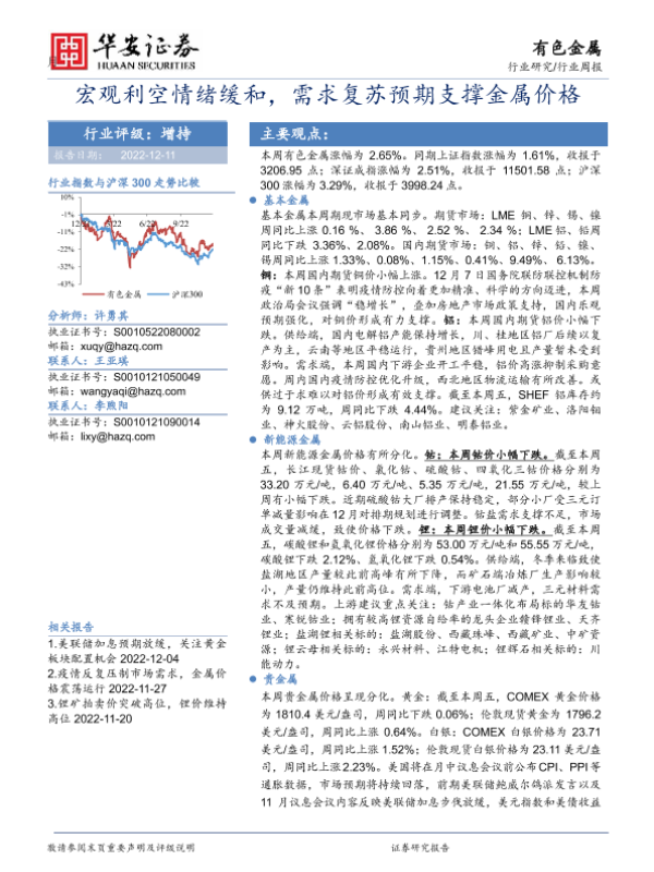 【华安证券】【20221211】20221211-华安证券-有色金属行业周报:宏观利空情绪缓和,需求复苏预期支撑金属价格-17页