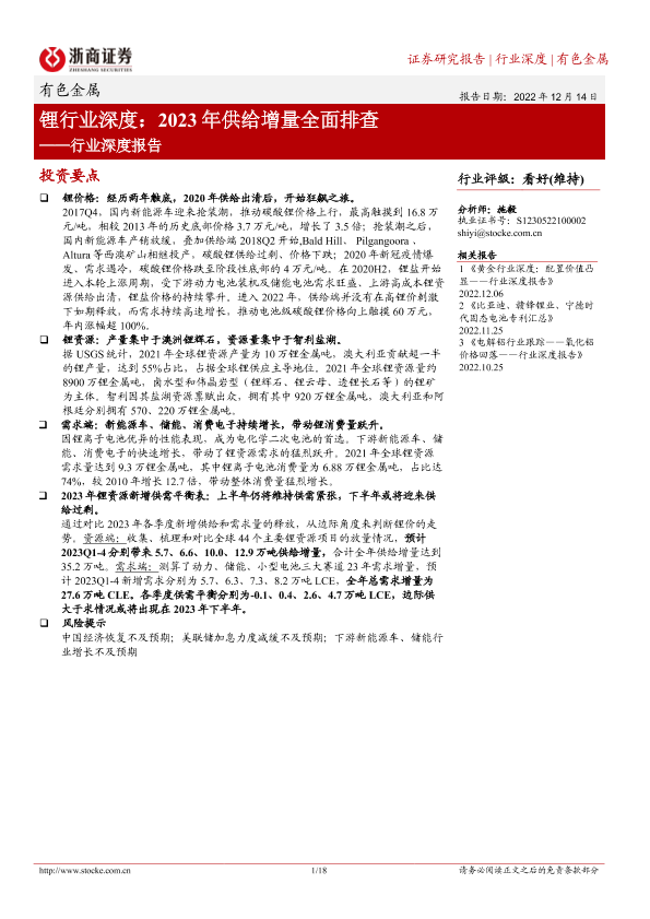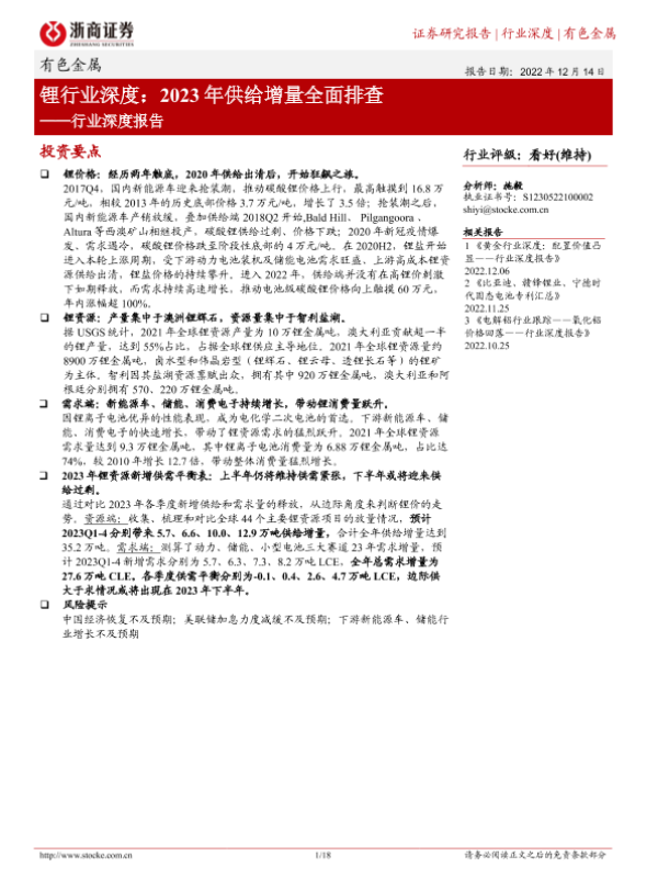 【浙商证券】【20221214】锂行业深度:2023年供给增量全面排查-18页