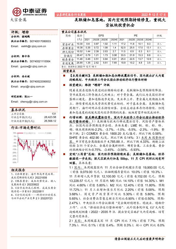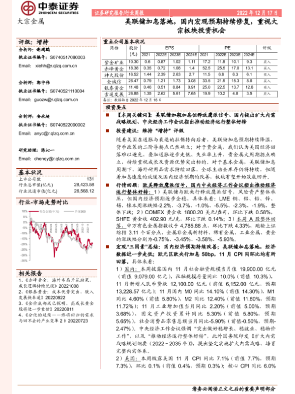 【中泰证券】【20221217】20221217-中泰证券-大宗金属行业周报:美联储加息落地,国内宏观预期持续修复,重视大宗板块投资机会-31页