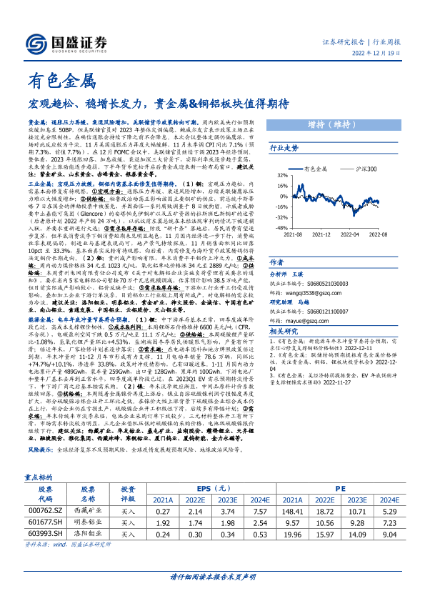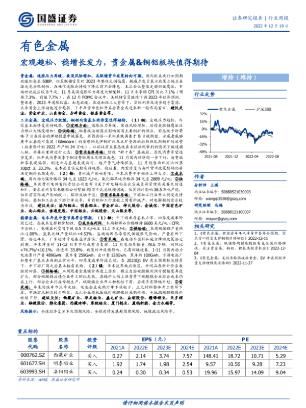 【国盛证券】【20221219】有色金属行业周报:宏观趋松、稳增长发力,贵金属&铜铝板块值得期待-20页