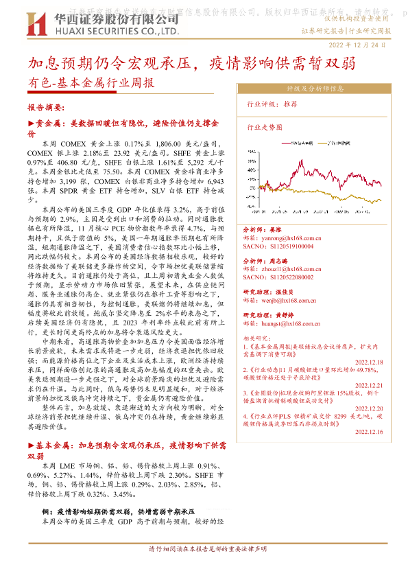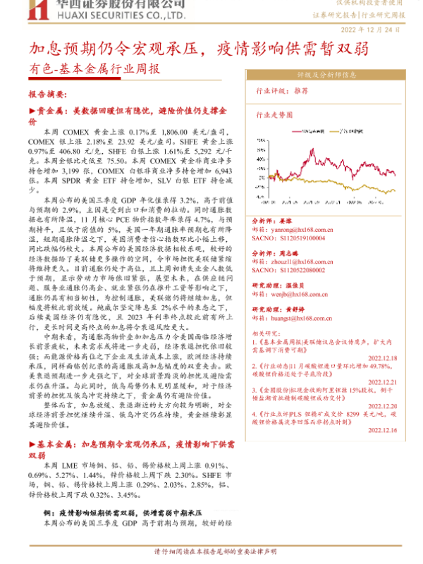 【华西证券】【20221224】20221224-华西证券-有色-基本金属行业周报:加息预期仍令宏观承压,疫情影响供需暂双弱-23页