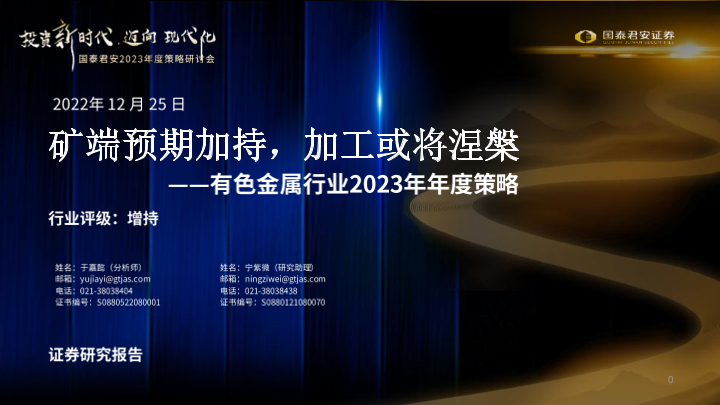 【国泰君安证券】【20221225】有色金属行业2023年年度策略:矿端预期加持,加工或将涅槃-79页