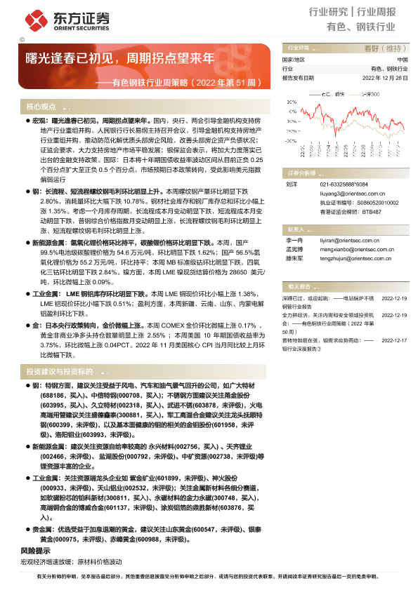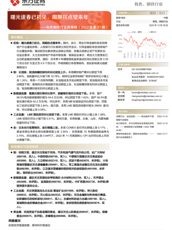【东方证券】【20221226】有色钢铁行业周策略(2022年第51周):曙光逢春已初见,周期拐点望来年-41页
