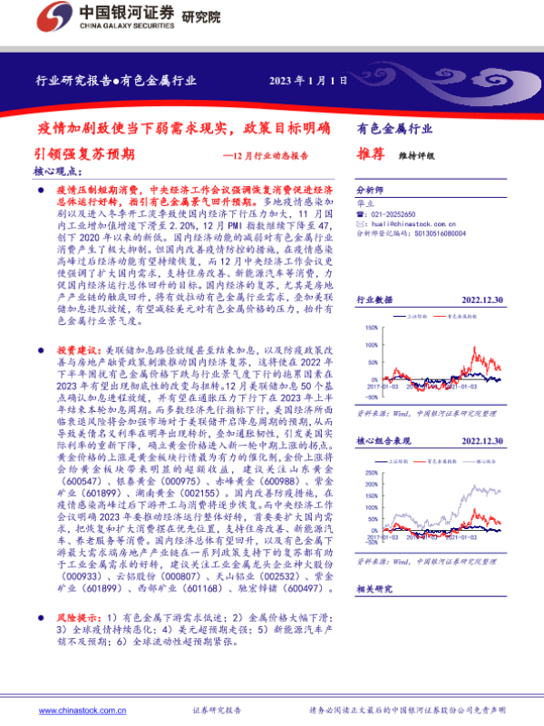 【银河证券】【20230101】20230101-中国银河-有色金属行业12月行业动态报告:疫情加剧致使当下弱需求现实,政策目标明确引领强复苏预期-24页