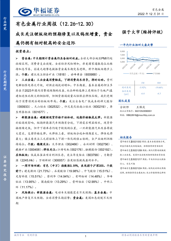 【华福证券】【20221231】20221231-华福证券-有色金属行业周报:成长关注锂板块的预期修复以及钨丝增量,贵金属仍拥有相对较高的安全边际-15页