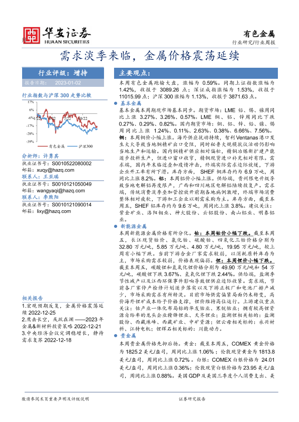 【华安证券】【20230102】20230102-华安证券-有色金属行业周报:需求淡季来临,金属价格震荡延续-18页