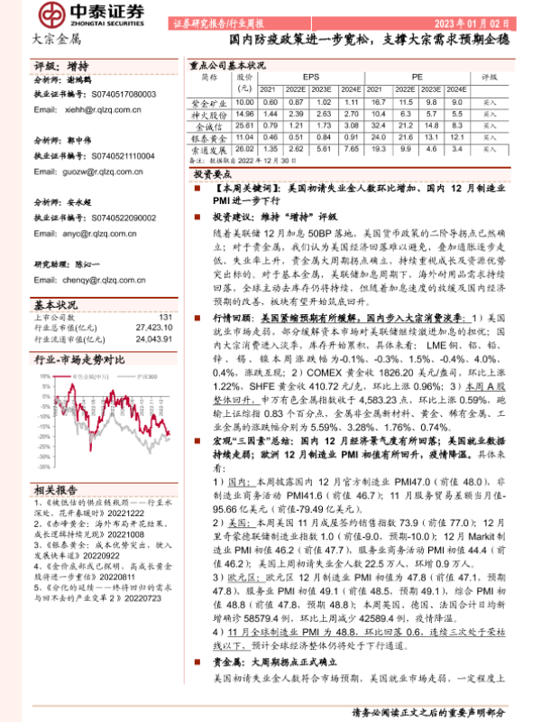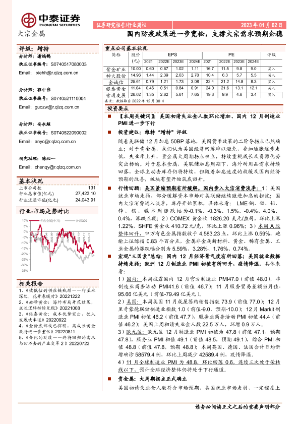 【中泰证券】【20230102】20230102-中泰证券-大宗金属行业周报:国内防疫政策进一步宽松,支撑大宗需求预期企稳-30页