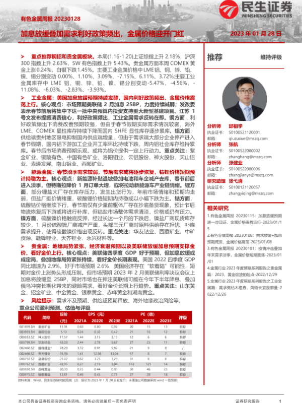 【民生证券】【20230128】20230128-民生证券-有色金属周报:加息放缓叠加需求利好政策频出,金属价格迎开门红-25页
