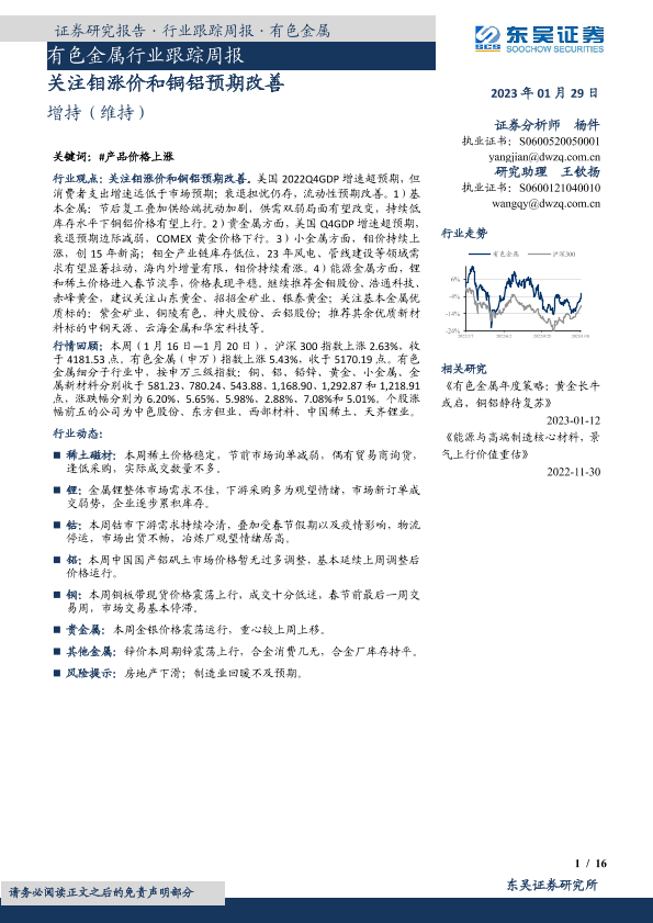 【东吴证券】【20230129】20230129-东吴证券-有色金属行业跟踪周报:关注钼涨价和铜铝预期改善-16页