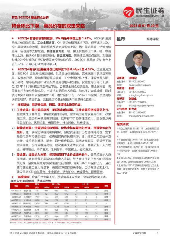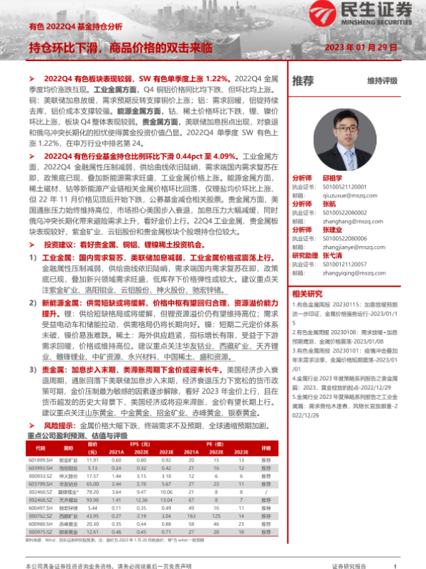【民生证券】【20230129】有色2022Q4基金持仓分析:持仓环比下滑,商品价格的双击来临-14页