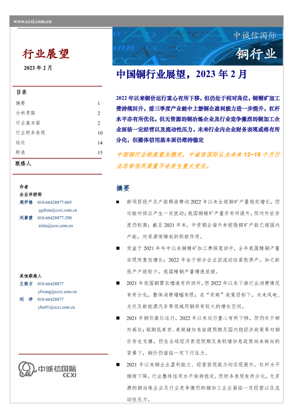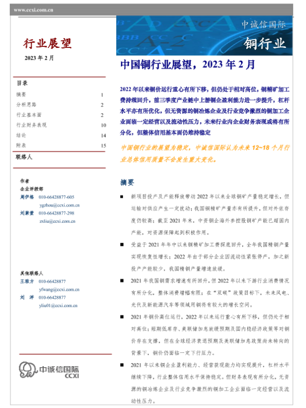 【中诚信国际】【202302】中国铜行业展望,2023年2月-17页