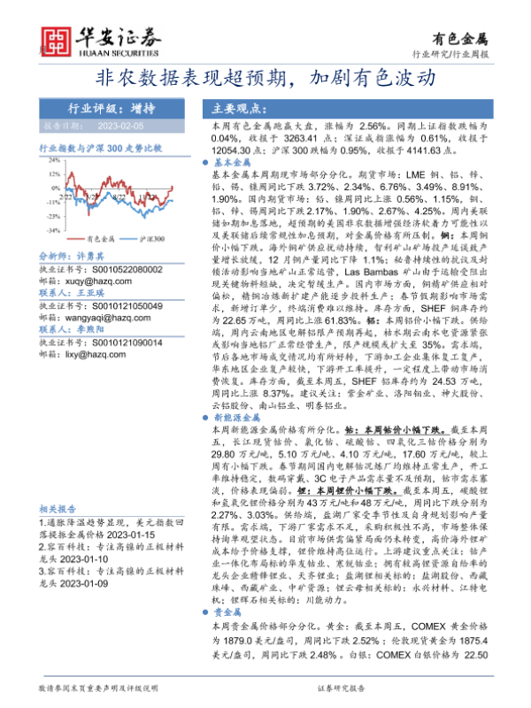 【华安证券】【20230205】20230205-华安证券-有色金属行业周报:非农数据表现超预期,加剧有色波动-16页