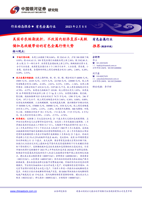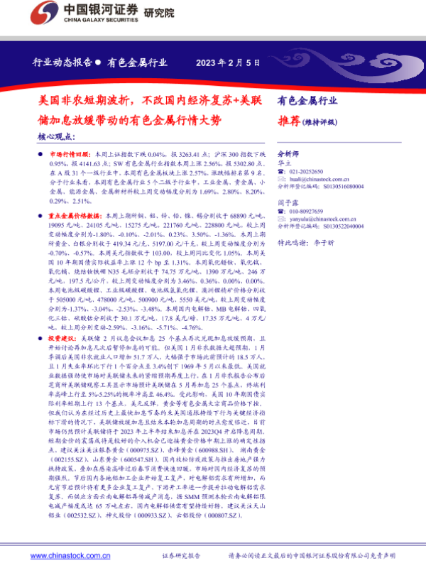 【银河证券】【20230206】美国非农短期波折,不改国内经济复苏+美联储加息放缓带动的有色金属行情大势-21页