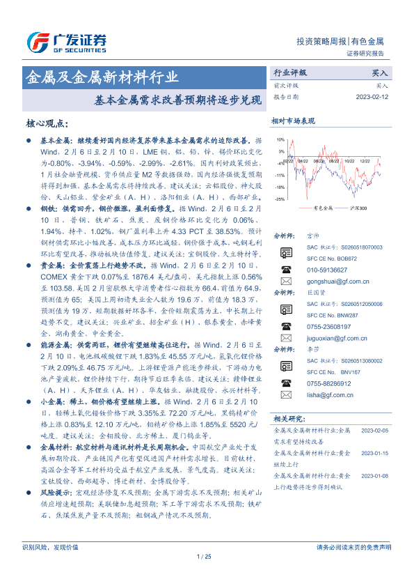 【广发证券】【20230212】20230212-广发证券-金属及金属新材料行业投资策略周报:基本金属需求改善预期将逐步兑现-25页