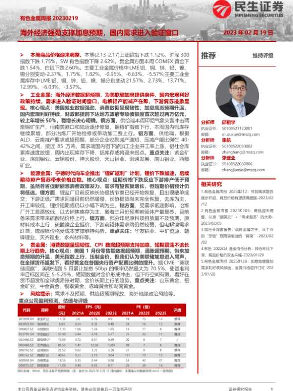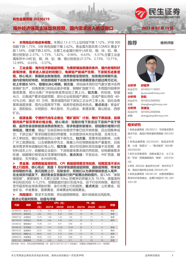 【民生证券】【20230219】20230219-民生证券-有色金属周报:海外经济强劲支撑加息预期,国内需求进入验证窗口-25页