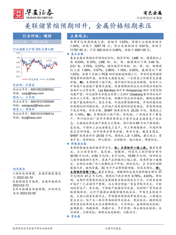 【华安证券】【20230226】20230226-华安证券-有色金属行业周报:美联储紧缩预期回升,金属价格短期承压-17页