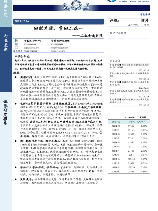 【国泰君安证券】【20230226】20230226-国泰君安-工业金属周报:回贬兑现,重回二选一-11页