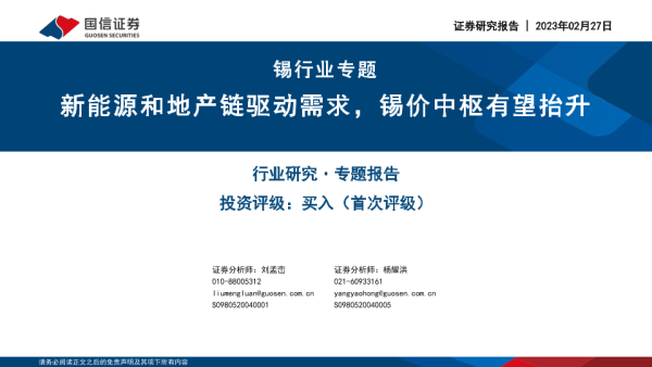 【国信证券】【20230227】20230227-国信证券-锡行业专题:新能源和地产链驱动需求,锡价中枢有望抬升-38页