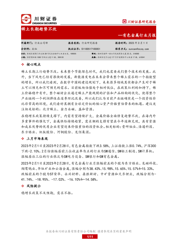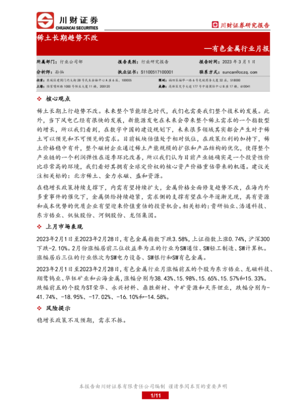 【川财证券】【20230301】20230301-川财证券-有色金属行业月报:稀土长期趋势不改-11页