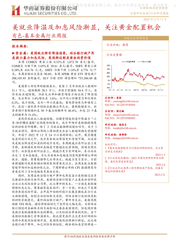 【华西证券】【20230311】20230311-华西证券-有色-基本金属行业周报:美就业降温及加息风险渐显,关注黄金配置机会-25页
